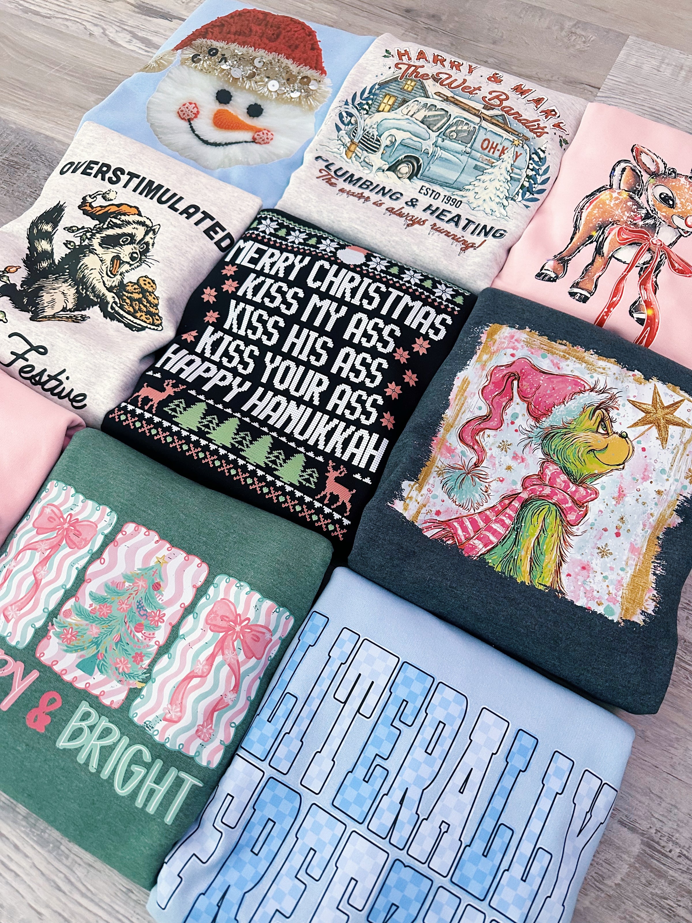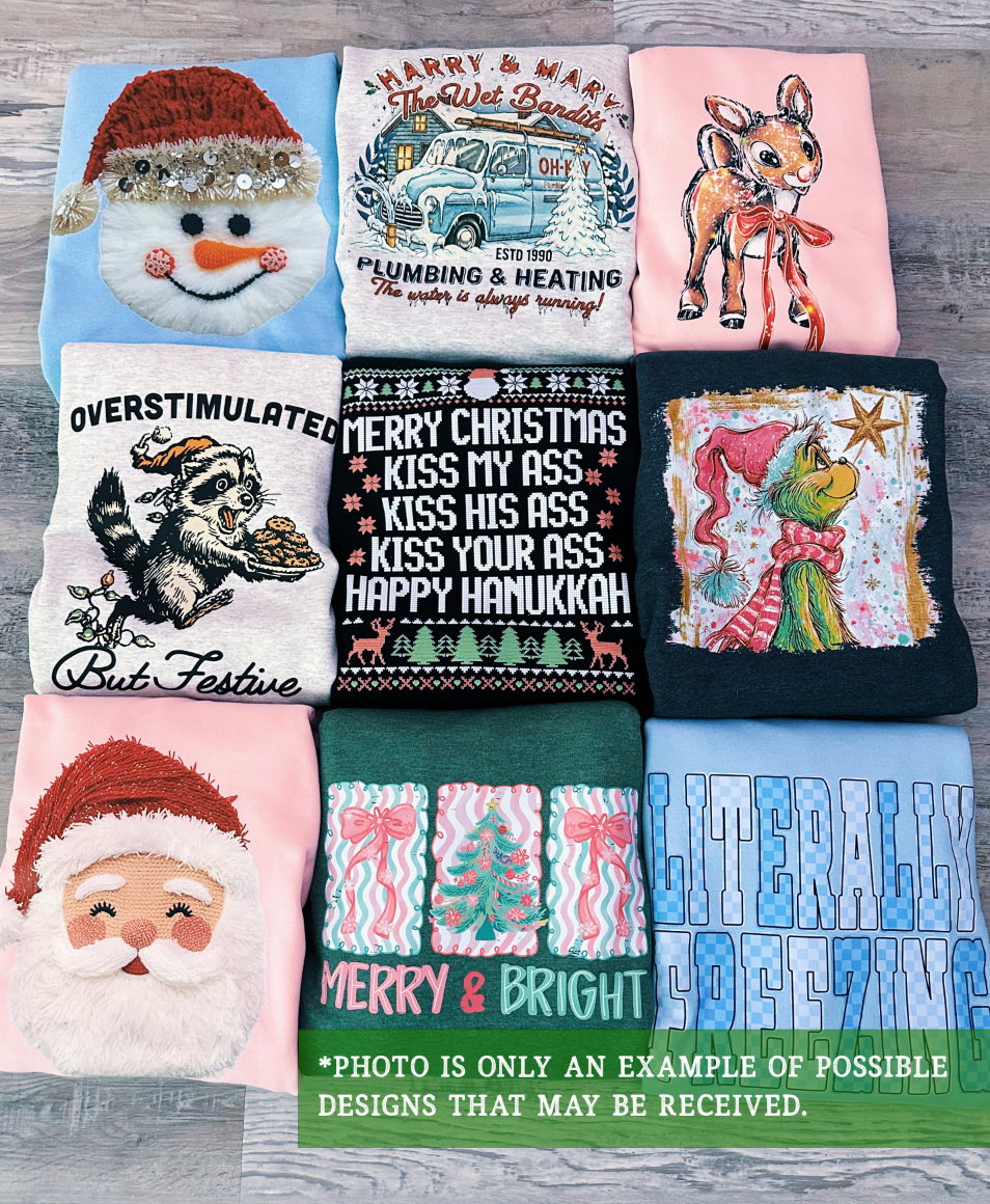 This listing is for a Christmas themed Mystery Sweatshirt/Bundle.